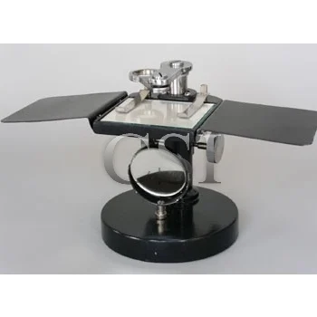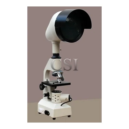 Binocular Research Microscope: ‘CSI’ with paired eye pieces 10x (W.L.) and 15x, objectives 5x, 10x, 45x (S.L.) and 100x oil immersion (S.L.) provided with solid state intensity control system, halogen illumination 6V, 20 Watts, co-axial mechanical stage, All eye pieces and objectives are of highest quality for research work. Packed in plywood cabinet.