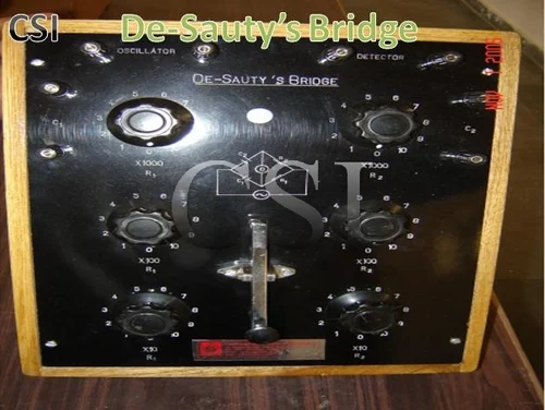 We manufacture and export a superior quality range of De-Sauty Bridge, which is available as a trainer to the clients. These products are available for the measurements of unknown Capacitance values and our products are also work as null detector for various applications. Our pro9ducts provide maximum accuracy to the users and these are available at industry leading prices to the clients. Thus, we offer them in various specifications to the clients.