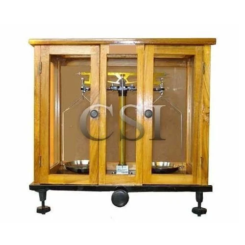 Physical Balance: with divided door Teak wood case and expended support. Varanasi make. Sensitivity – 0.5 mg. Capacity — 200 gm.