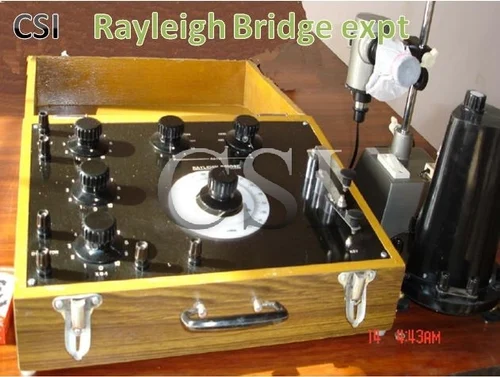 Our clients can avail from us a superb quality range of Rayleigh Bridge at market leading prices. These products have Ratio Arm that is in terms of 2 dials 1, 10, 100 ohms. Each and a Rheostat arm that is available in 3 dials. Our products are available along with slide wire, which is standardized in 100 equal parts to provide easy and fast calculations. Further, these products consist of battery and galvanometer that are connected with the help of the connection of the keys and terminals.