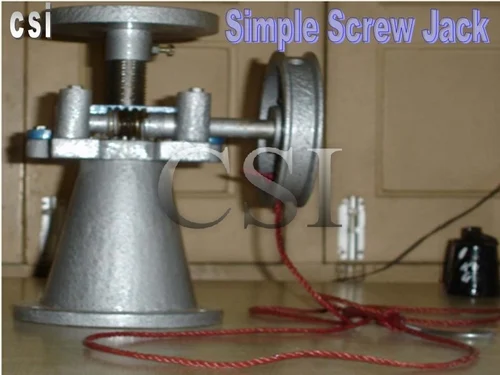 CSI 9075 Screw jack  ( Without weights)All metallic construction accurately machine cut screw with a pitch of 5 mm carrying a double fanged turn table of about 20 cm diameter. Fitted on a heavy cast iron base and complete with two adjustable pulleys, cord and hooks. Weights are not included.